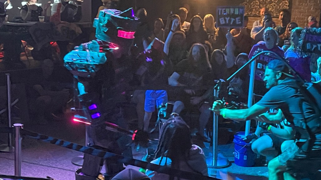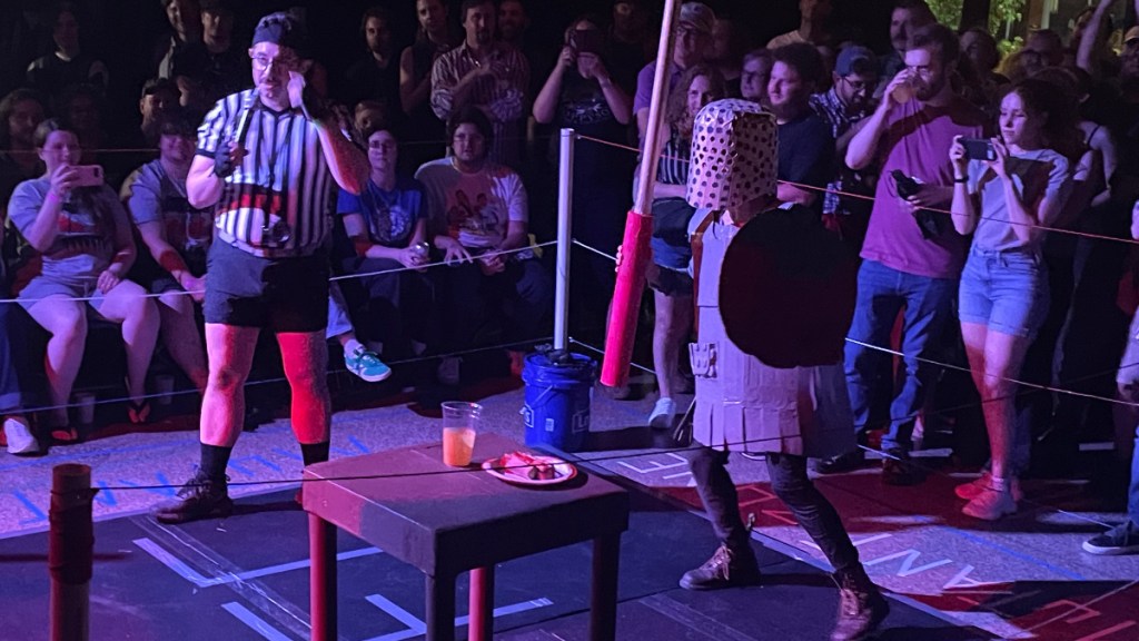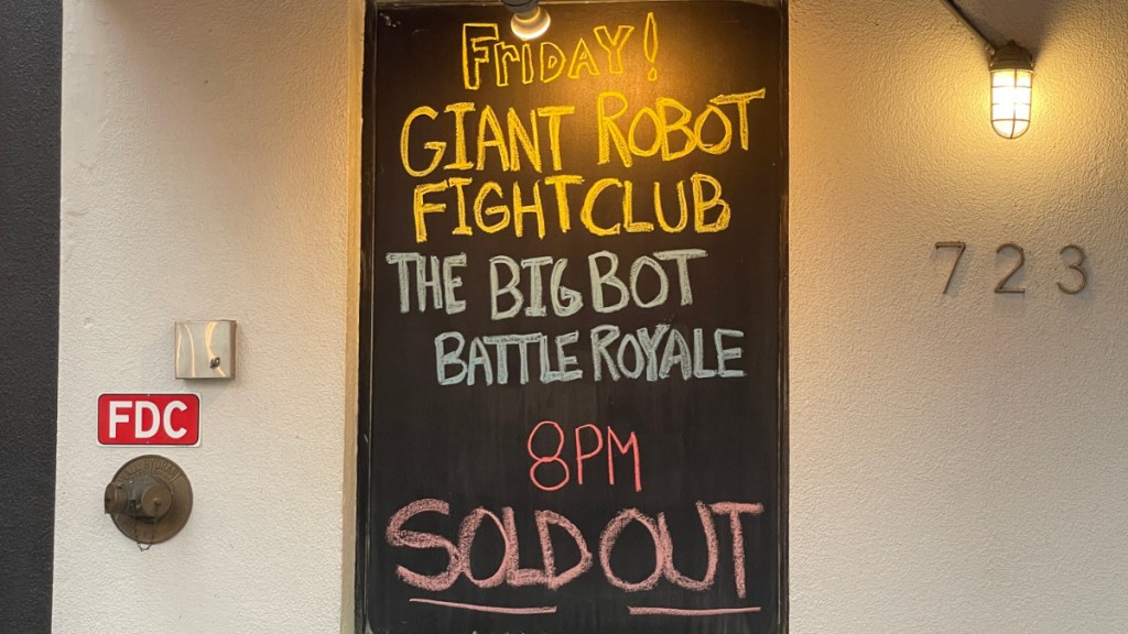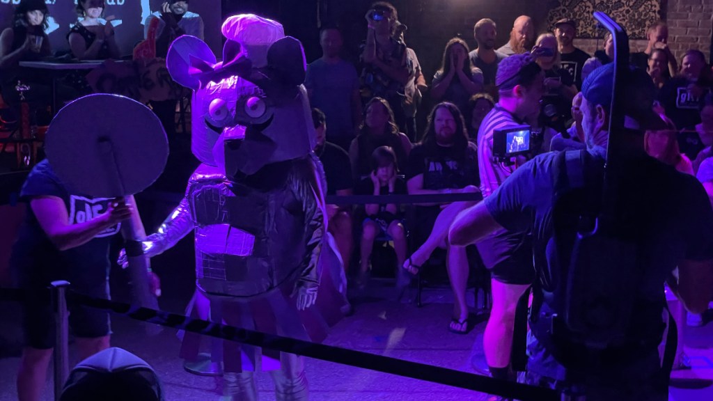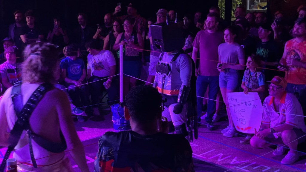Last week, a friend invited me to attend Giant Robot Fight Club at Motorco in Durham. It is a show where people dressed in cardboard robot suits battle one another in pro wrestling-style bouts. It was a ton of fun! If you’re in the area and have a chance to go, you should.